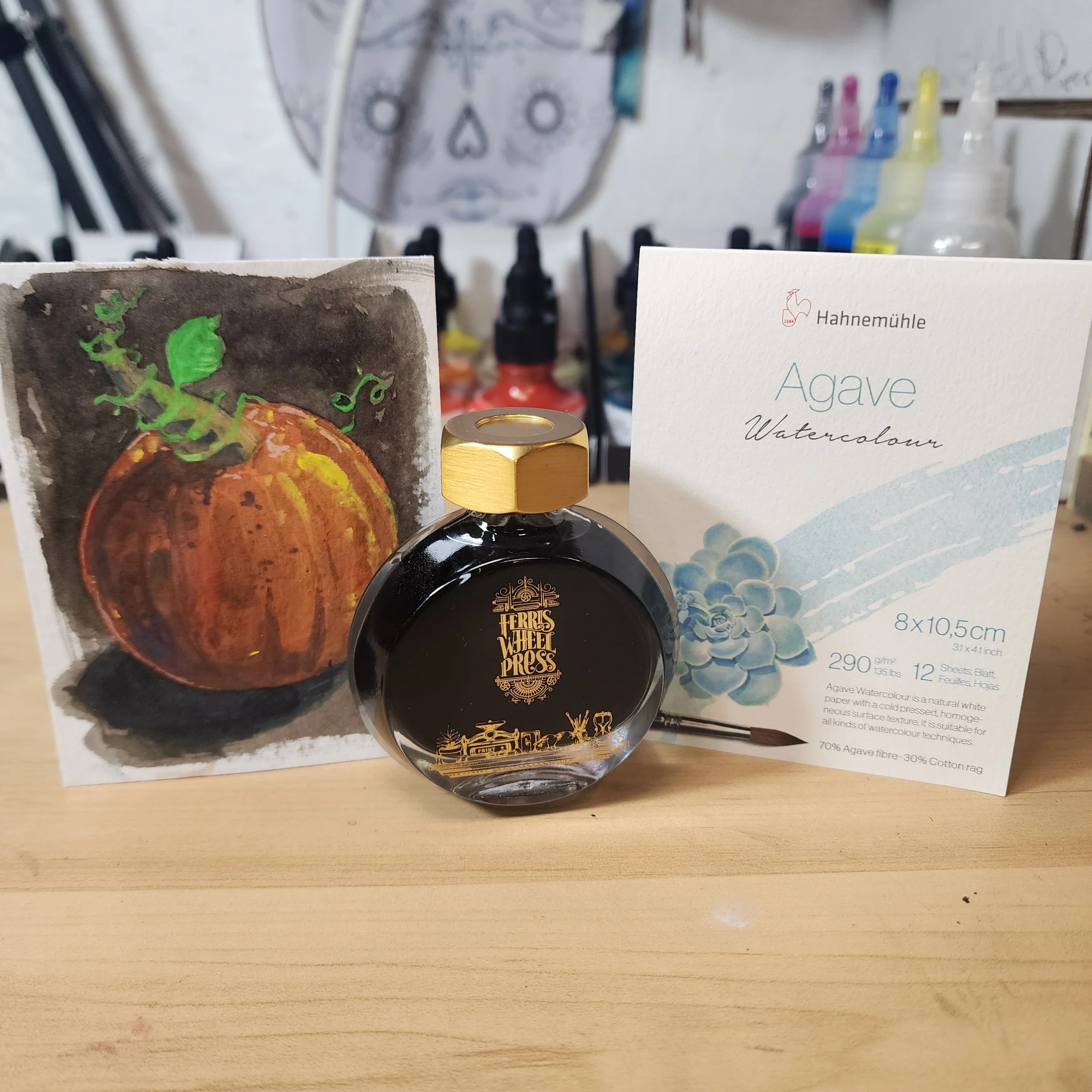 1 of 4 Pieces done on Fabriano Hot Press watercolor paper. 9×6 done with Inks