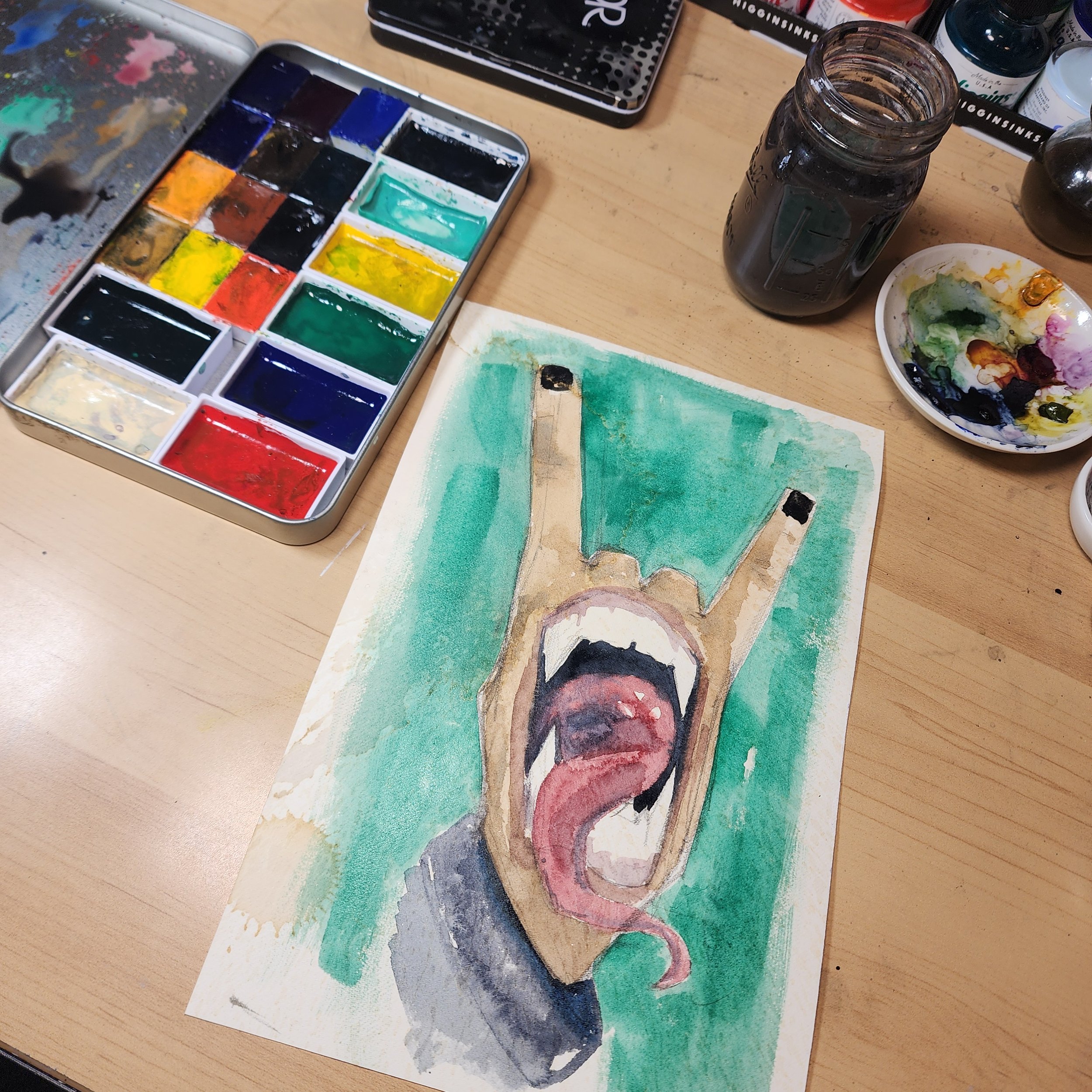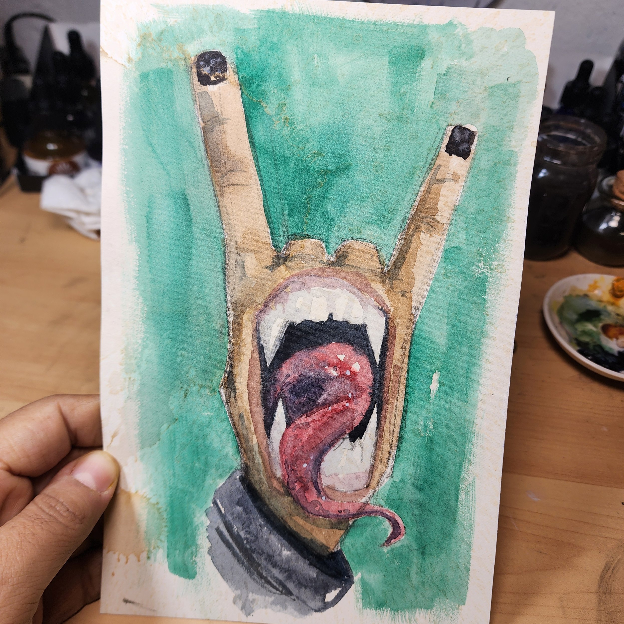 One of my favorite pieces done this year so far. This Skull/Rose morph was done on Arches cold-pressed watercolor paper. Using wet on wet technique, along with some layering once dried. I used watercolors and watercolor inks or this.